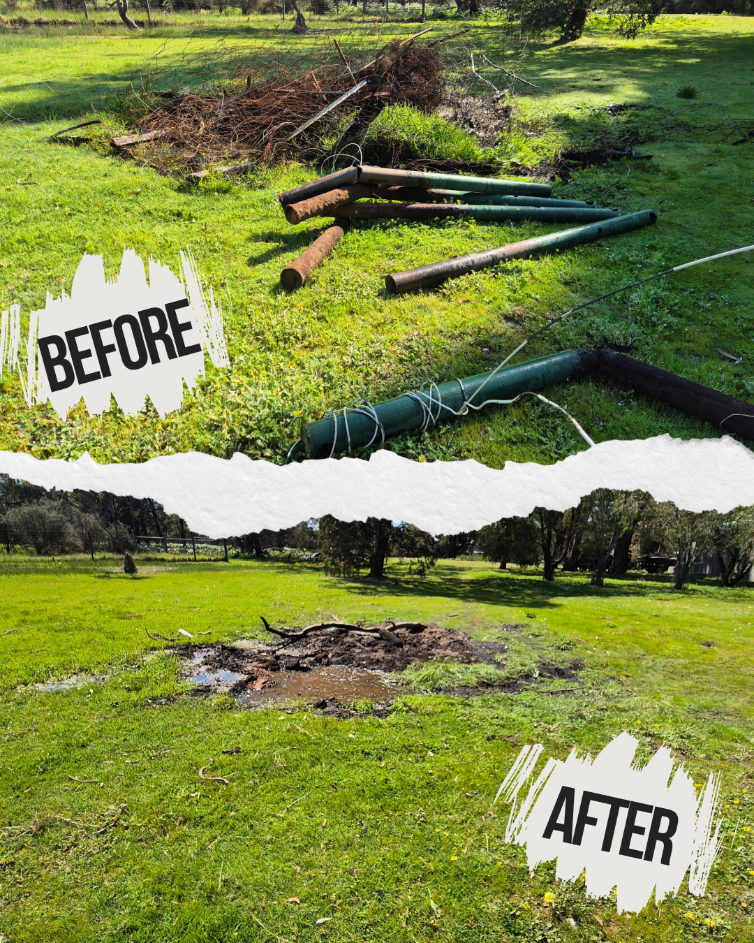We remove junk piles and green waste to help reduce fire risk on rural properties.